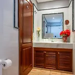 Uvnitř vily najdete pokoje s osobním sejfem, pohovkou, přístrojem na přípravu kávy a čaje, i 3 koupelen s prostornou sprchou, samostatnou toaletou a vanou.